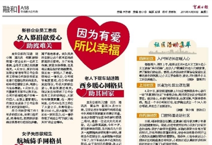 鴻運(yùn)物業(yè)愛心捐助,獲寶安日?qǐng)?bào)報(bào)道。報(bào)道內(nèi)容如下: 倡議發(fā)出后得到了公司全體員工的積極響應(yīng),大家紛紛慷慨解囊,在一周時(shí)間公司406名員工伸出了大愛之手,共籌得愛心款20063元,極大緩解了賀正生一家的壓力,這一善舉體現(xiàn)了鴻運(yùn)公司濃濃的“如家人般關(guān)懷”的企業(yè)精神。公司一貫以人為本,孟春慰問(wèn)傳真情。鴻運(yùn)員工獻(xiàn)愛心,募捐善款救病人。鴻運(yùn)物業(yè)自成立以來(lái)始終堅(jiān)持以人為本,黨支部、董事會(huì)領(lǐng)導(dǎo)時(shí)刻把員工的冷暖掛在心間,把困難員工記在心坎上,為員工排憂解難,用真心真情關(guān)愛每一位員工,讓每一位員工充分感受到鴻運(yùn)物業(yè)大家庭的溫暖,讓愛充滿鴻運(yùn)!