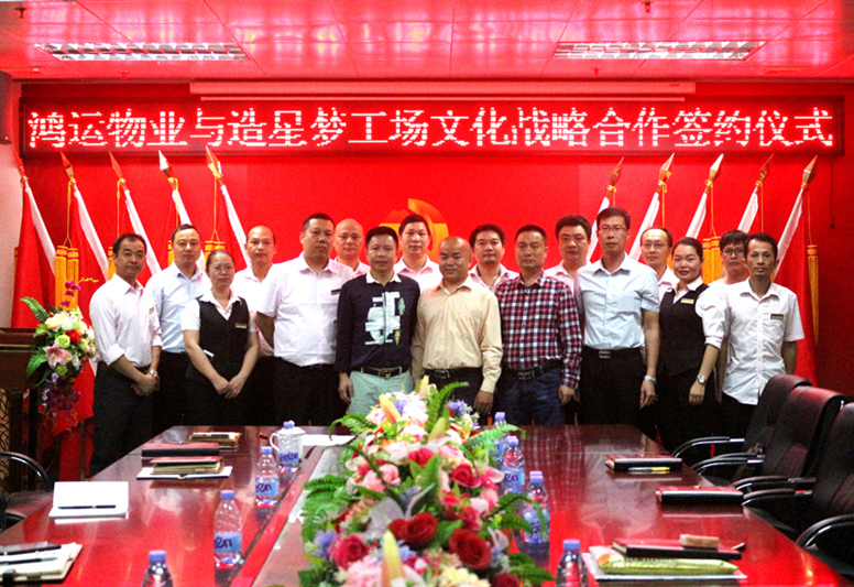 2019年10月31日下午,我司與惠州市造星夢(mèng)工場(chǎng)文化傳播有限公司戰(zhàn)略合作簽約儀式圓滿舉辦,造星夢(mèng)工場(chǎng)總經(jīng)理盧昶龍先生蒞臨我司交流,我司總經(jīng)理陳喜祥先生攜全體高層領(lǐng)導(dǎo)進(jìn)行了隆重接待。 雙方就惠州物業(yè)項(xiàng)目、安保項(xiàng)目、房屋租售項(xiàng)目三個(gè)方面達(dá)成合作共識(shí),并現(xiàn)場(chǎng)簽署戰(zhàn)略合作協(xié)議。我司向造星夢(mèng)工場(chǎng)盧總、劉總依次介紹鴻運(yùn)高層員工,然后共敘佳話,同繪愿景。 今后,雙方將共同開拓惠州市場(chǎng),充分發(fā)揮彼此優(yōu)勢(shì),互學(xué)互鑒,互利共贏。