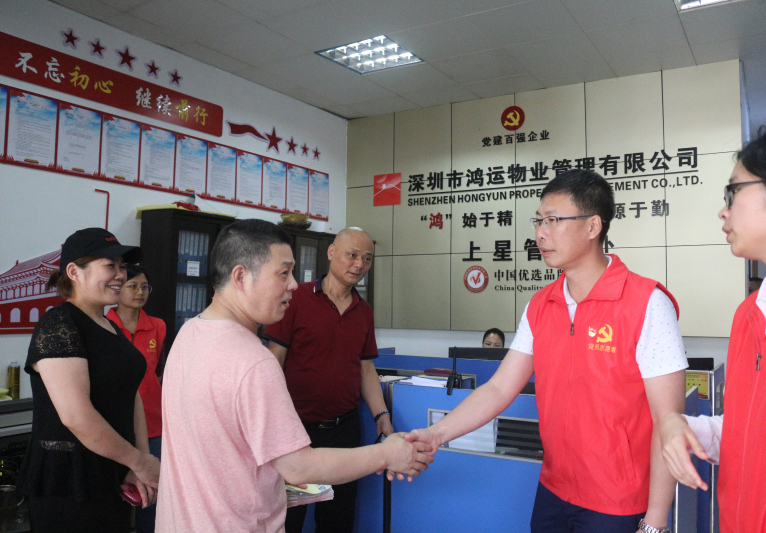 3月22日,“兩覆蓋 雙提升 新橋黨建創(chuàng)新篇”——新橋街道新成立32個(gè)“兩新”組織黨支部集中揭牌儀式,在新橋街道舉行。揭牌儀式結(jié)束后,區(qū)委組織部副部長(zhǎng)、編辦副主任廖望同志,區(qū)黨代辦副主任、組織科負(fù)責(zé)人魯攀同志;街道黨工委書記衛(wèi)樹強(qiáng),黨工委副書記、人大工委主任高偉光,黨工委委員、組織人事部部長(zhǎng)邱南山等領(lǐng)導(dǎo),于上午11:20,來(lái)我司參觀,了解我司黨支部建設(shè)情況,并在會(huì)議室舉辦座談會(huì)。 我司黨支部書記陳遠(yuǎn)文同志熱情地為上級(jí)領(lǐng)導(dǎo)講解公司的文化墻,介紹鴻運(yùn)物業(yè)發(fā)展歷程、企業(yè)文化和黨建情況。在介紹鴻運(yùn)物業(yè)的司歌時(shí),大家紛紛對(duì)我司的逐夢(mèng)精神表示認(rèn)可,并鼓勵(lì)道企業(yè)就應(yīng)該要有夢(mèng)想。隨后,步入會(huì)議室舉辦座談會(huì),在座談會(huì)上,領(lǐng)導(dǎo)們與我司黨支部黨員真誠(chéng)交流,在聽(tīng)取工作報(bào)告后,為我司黨支部的發(fā)展指明方向,提出建議。 在此次活動(dòng)的新聞報(bào)道中,新橋兩新組織黨委這樣評(píng)價(jià)鴻運(yùn)物業(yè)黨支部:“深化黨建引領(lǐng),積極探索具有新橋特色新時(shí)代基層治理的新路徑。鴻運(yùn)物業(yè)黨支部成立深圳首支黨員應(yīng)急救援服務(wù)隊(duì),通過(guò)“1+3+N”的模式不斷培育志愿者服務(wù)團(tuán)隊(duì),120名隊(duì)員全部具備精干過(guò)硬的突發(fā)事件和災(zāi)害事故應(yīng)對(duì)處置能力,組織52次巡查,排除安全隱患60余處。以樓棟長(zhǎng)聯(lián)合會(huì)黨支部為引擎,發(fā)揮黨員帶頭作用,推動(dòng)黨員與樓棟長(zhǎng)互動(dòng),調(diào)動(dòng)樓棟長(zhǎng)、租戶落實(shí)主體責(zé)任的積極性,實(shí)現(xiàn)“黨建引領(lǐng)、群眾參與、網(wǎng)格自治、各方協(xié)作”局面,打通服務(wù)老百姓的‘最后一...